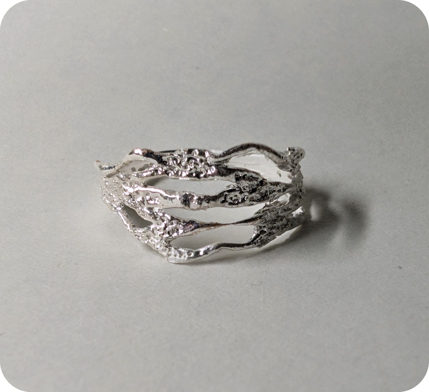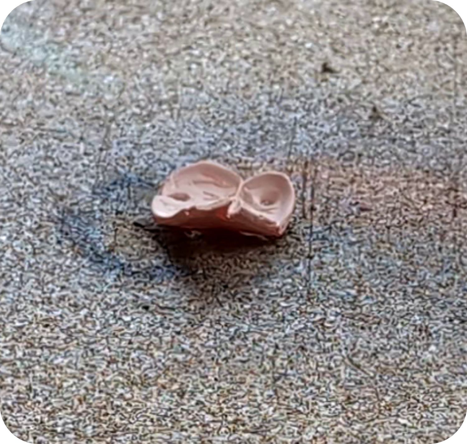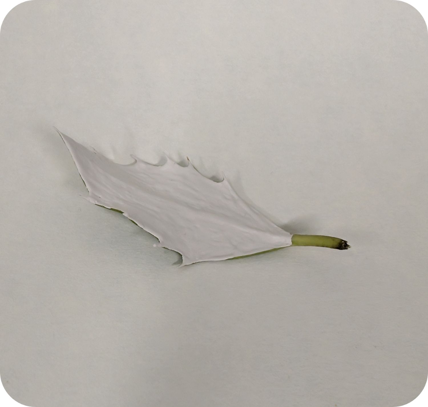 När du är klar med ditt projekt och är nöjd med det är det mycket viktigt att låta objektet torka ordentligt innan du bränner det. Torktiden beror på storlek och tjocklek, men som regel torkar den tunnaste ytan, ca 0,5–1 mm, efter 2–3 timmar (visa bild på blad). Ju tjockare objektet är, desto längre är torktiden (se bild på ring). Om du är osäker på om det är tillräckligt torrt kan du försiktigt röra vid leran. Om den känns väldigt kall, nästan som om den är fuktig, behöver den torka längre.
